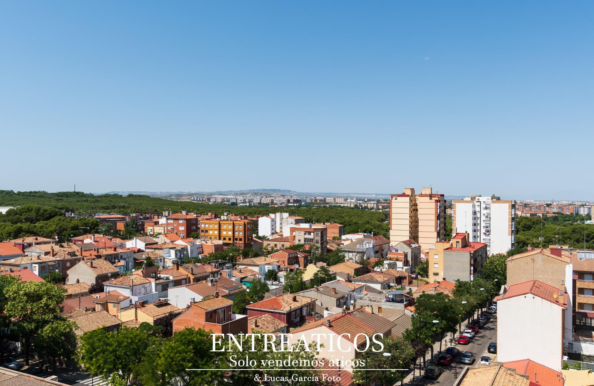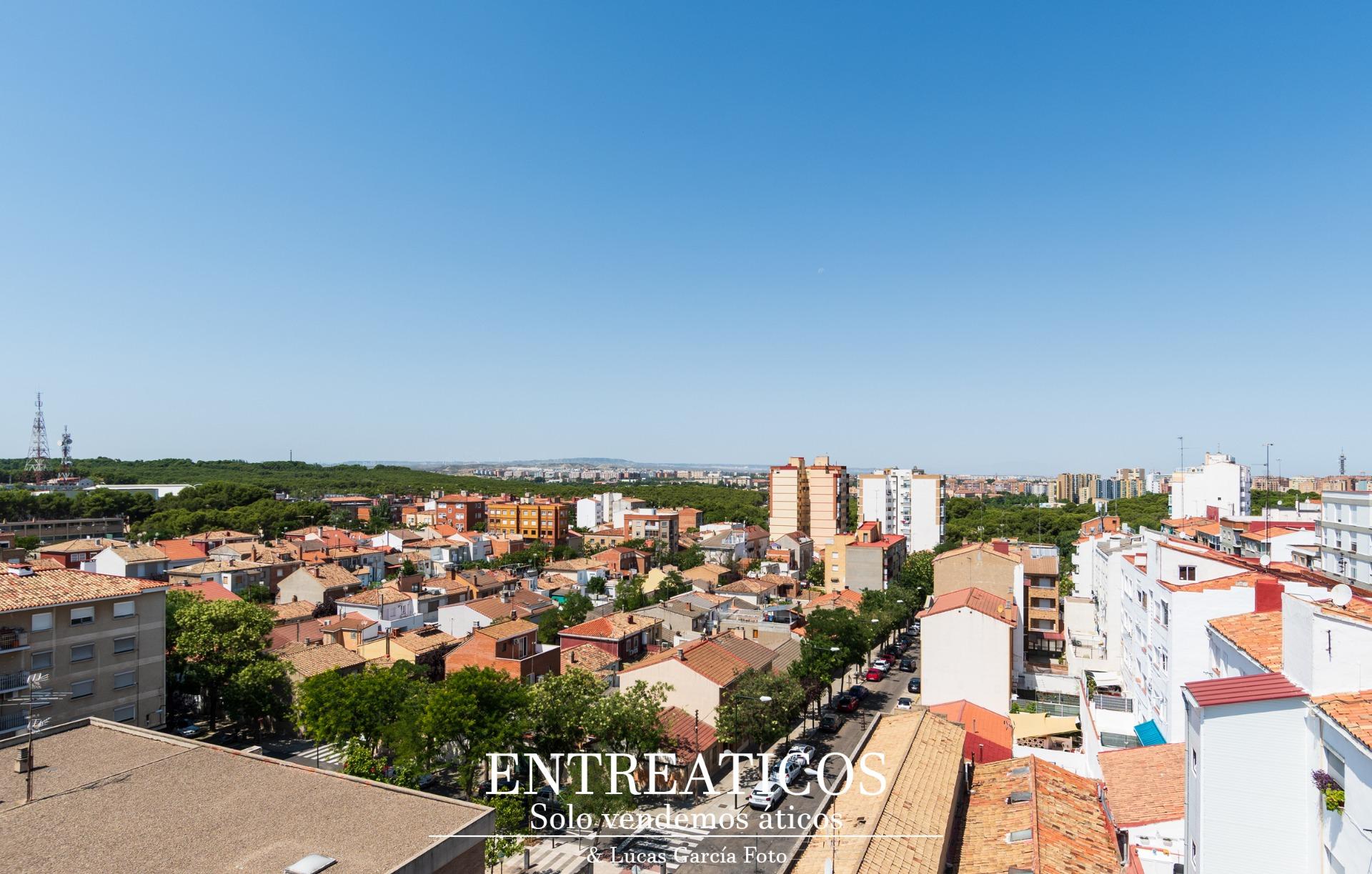 Te presentamos este bonito ático, en la zona de Pinares de Venecia, junto a la calle de Fray Julián Garcés, en un entorno totalmente consolidado, con todo el comercio, servicios y comunicaciones que necesites, y a escasos metros del pulmón verde de Zaragoza. Una fantástica ubicación donde comenzar una nueva vida. ~El ático cuenta con una superficie total de unos 65 m2, siendo unos 13 m2 de terraza descubierta y unos 52 m2 de superficie construida. Se distribuye en salón, cocina, dos dormitorios amplios y un baño, con una distribución perfecta para no perder ni un solo metro de superficie. Y por supuesto, la terraza. Esa terraza que tanto tiempo has deseado tener. Una terraza descubierta, muy aprovechable, con espacio para zona de comedor, con posibilidad de instalar una pérgola, zona de barbacoa y espacio para unas hamacas desde donde deleitarte de sus impresionantes vistas. Una terraza desde la que contemplarás unos atardeceres increíbles. El sol escondiéndose, con los pinares y el Parque Grande como telón de fondo, será un espectáculo indescriptible. Todos tus amigos querrán que les invites a disfrutarlo! ~El ático es completamente exterior, con doble orientación: al sol de mañana y al sol de tarde. Es un ático lleno de luz y con unas vistas increíbles desde ambas orientaciones. ~Se encuentra en buen estado de conservación, aunque puede requerir alguna actualización para dejarlo completamente a tu gusto. La finca cuenta con ascensor a cota cero, y el patio ha sido reformado recientemente. ~Disfruta del reportaje fotográfico que te hemos preparado y llámanos para verlo. Seguro que te encantará!~~